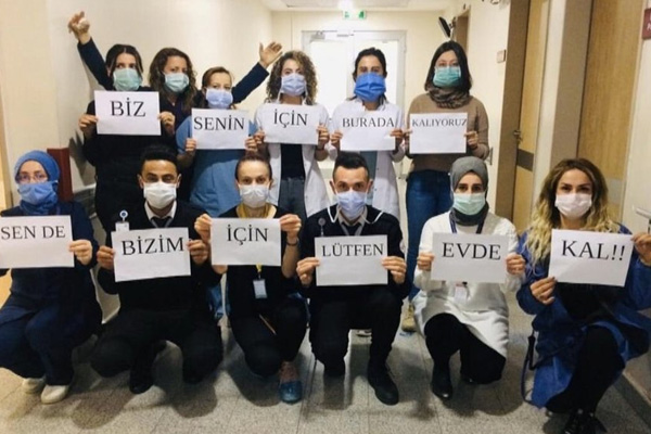 Kardeşlerin yazdığı mesajda, bizim annemiz sağlıkçı babamız asker.